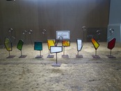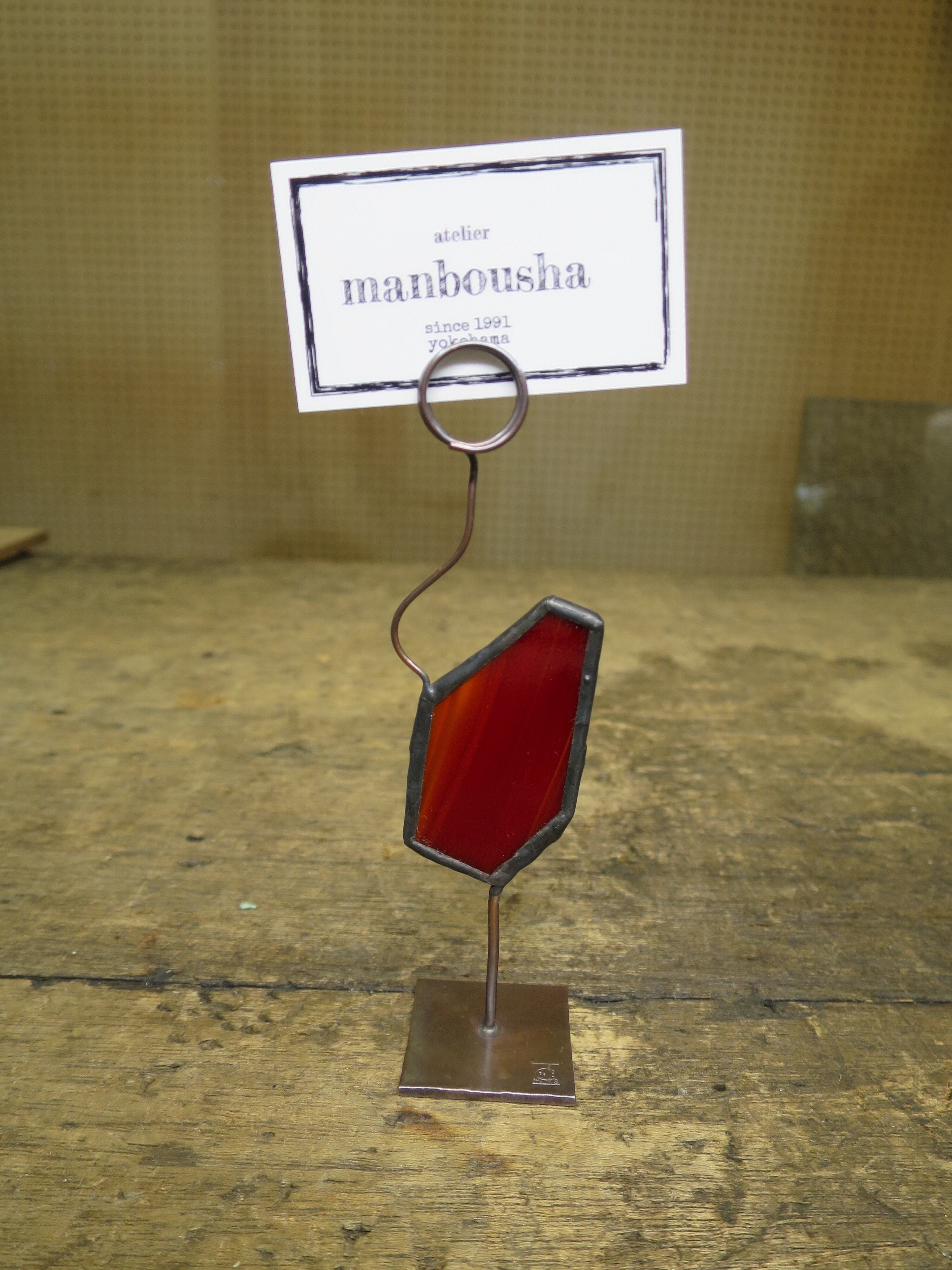 ステンドグラス用のガラスのパーツと銅で作ったカードスタンドです。